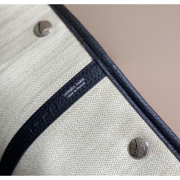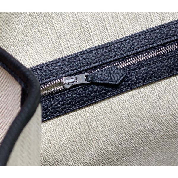 HERM Garden Party 36cm Bag in Toile and Black Leather