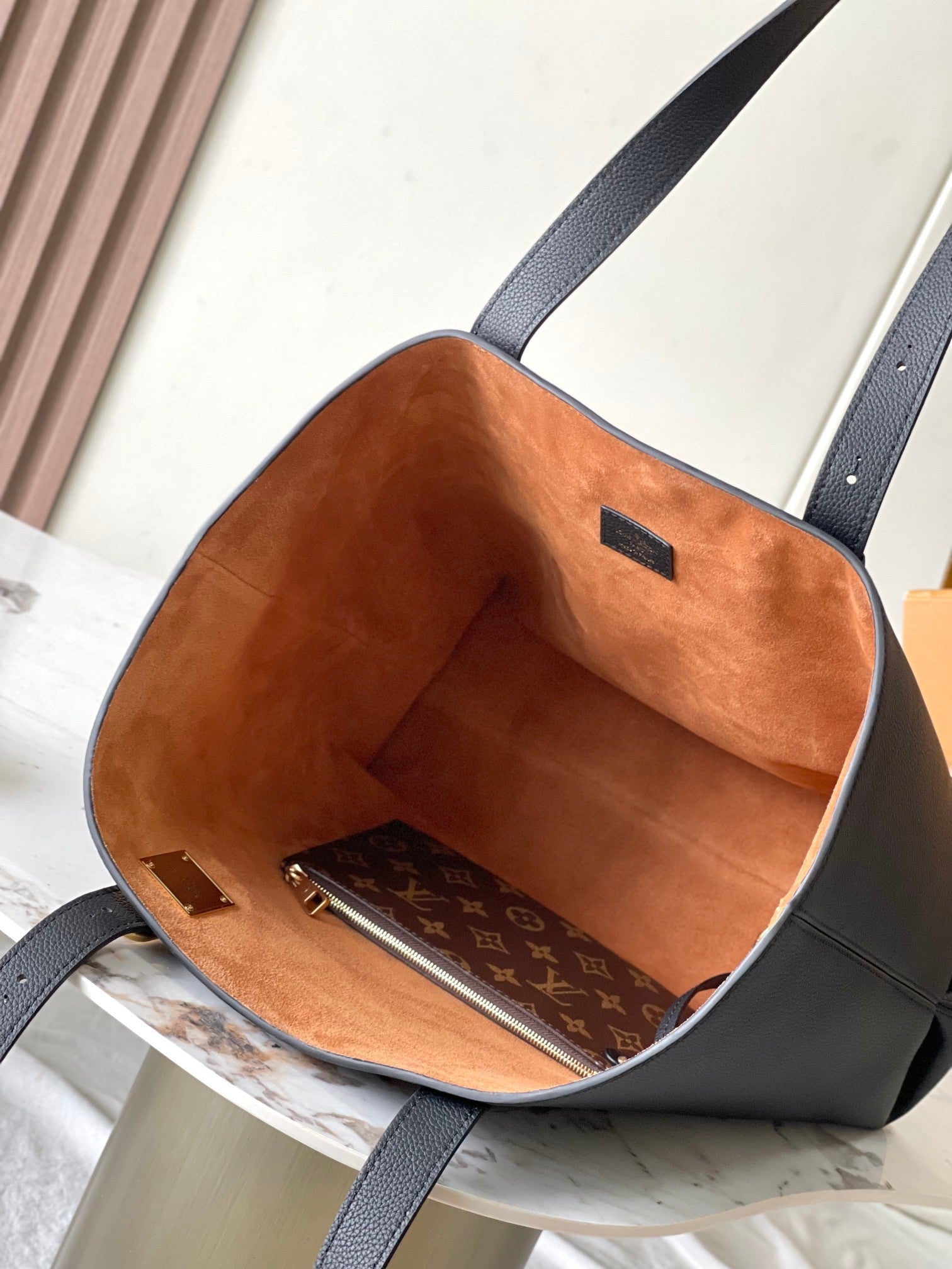 LOW KEY CABAS 47 IN BLACK GRAINED CALFSKIN GOLD BUCKLE