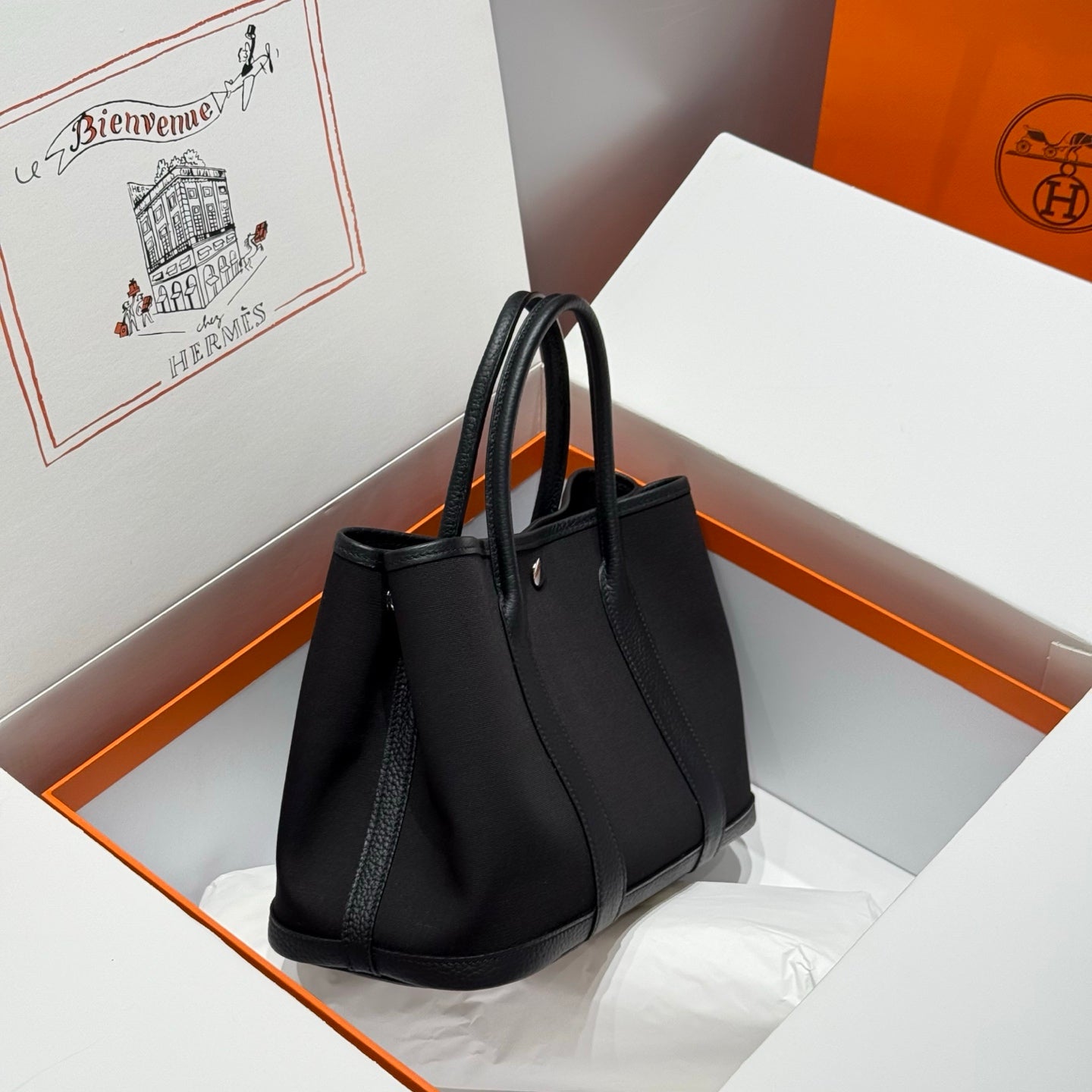 GARDEN PARTY 30CM IN BLACK TOILETS COTTON CANVAS AND CALFSKIN