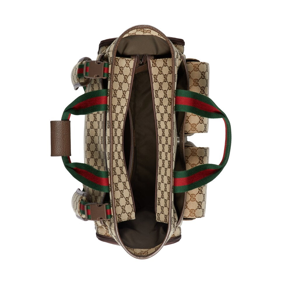 DIAPER BAG 40 WITH WEB IN BEIGE AND EBONY CANVAS MIX BROW CALFSKIN