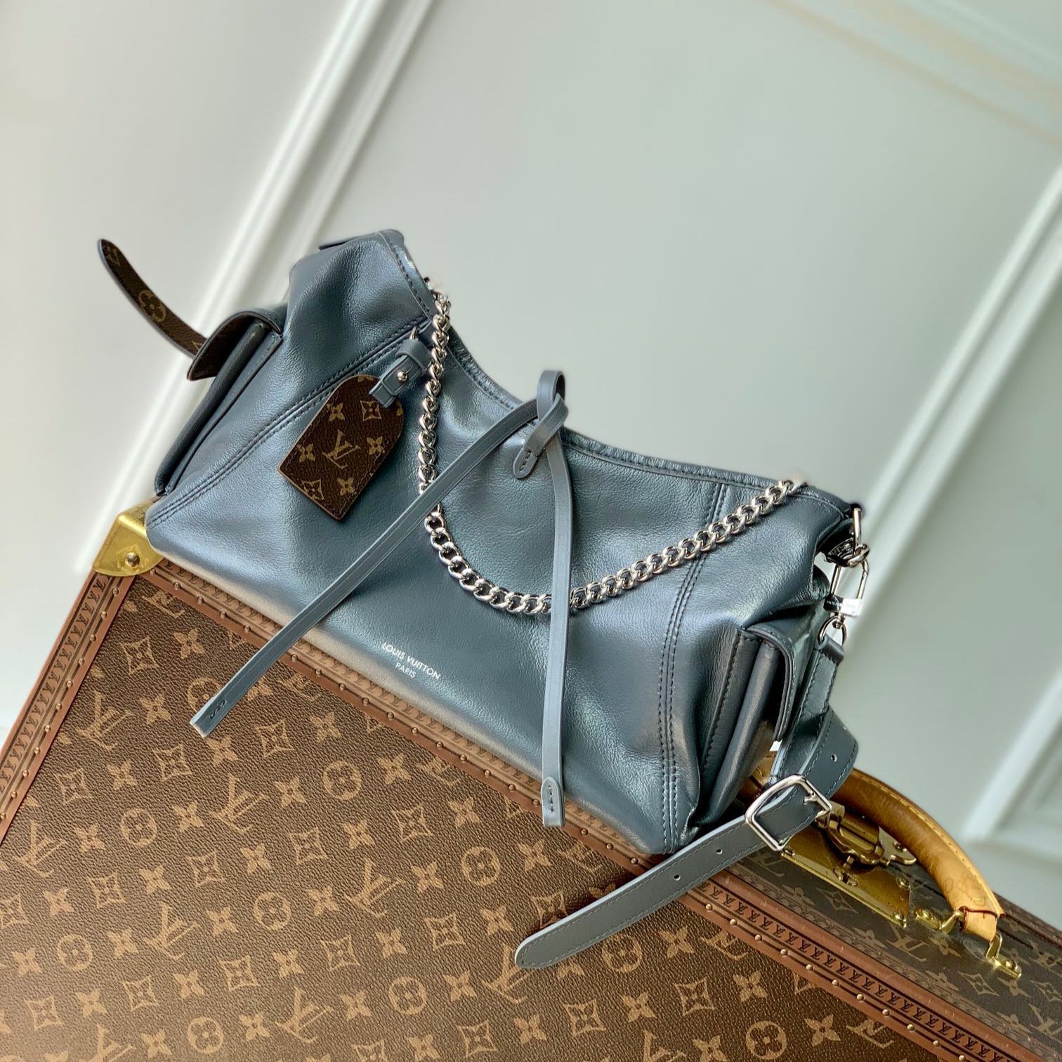 CHAIN TOTE 39 SOFT GREY CALFSKIN
