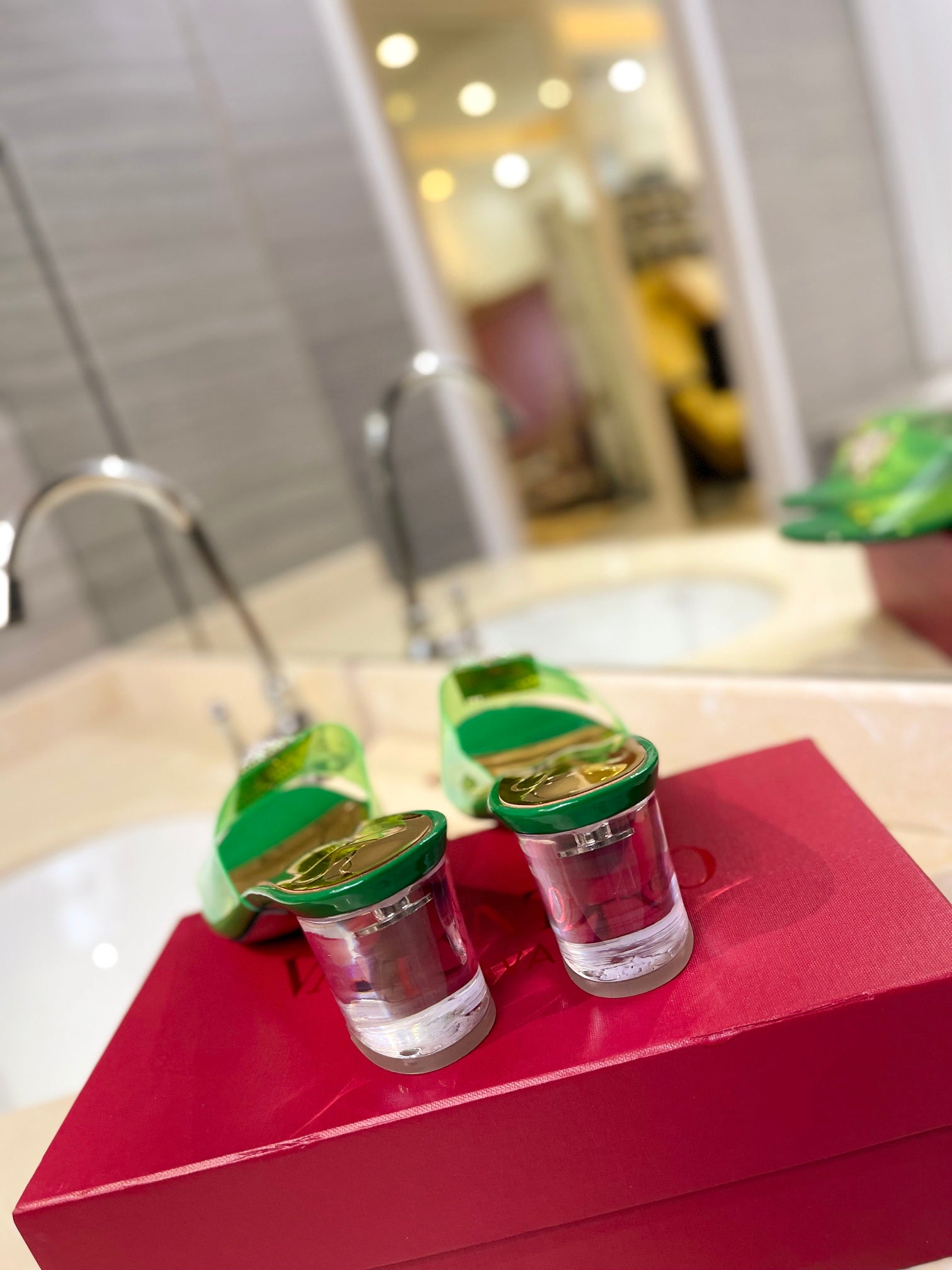 HIGH MULE 60MM IN SHAMROCK GREEN SHEEPSKIN AND TRANSPARENT PVC