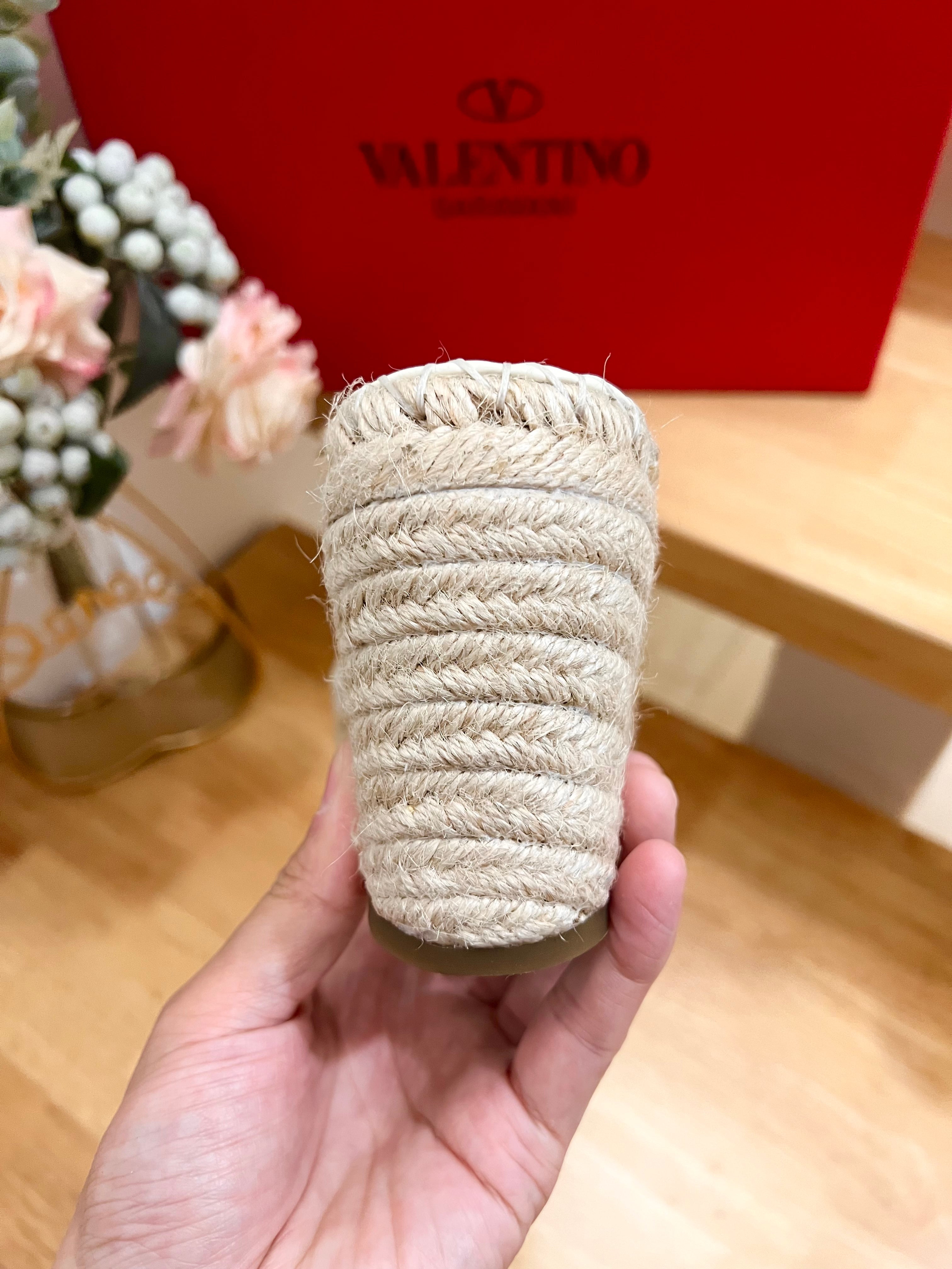 • Wedge heel wrapped in braided jute