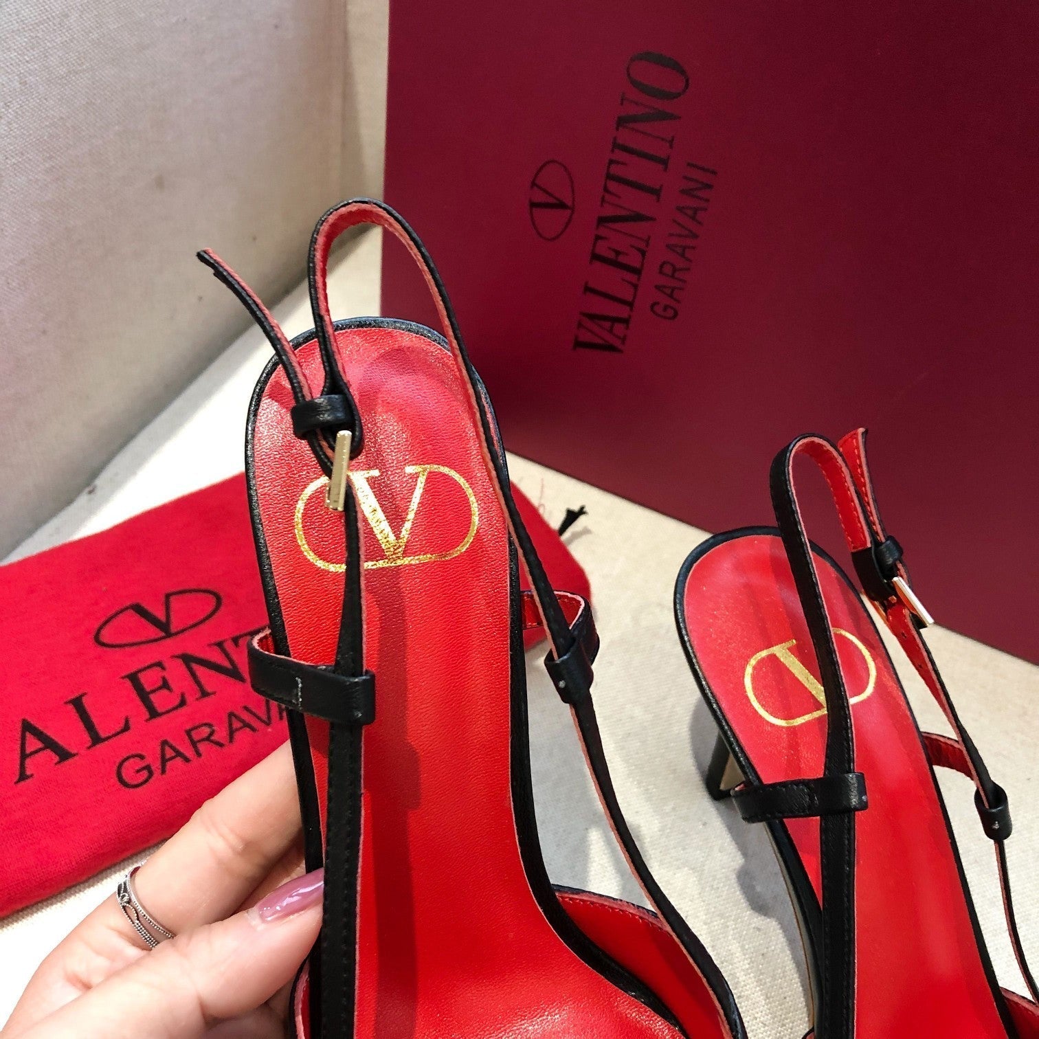 VLOGO SIGNATURE BLACK CALFSKIN HIGH SLINGBACK PUMP 7 CM WITH GOLD LOGO