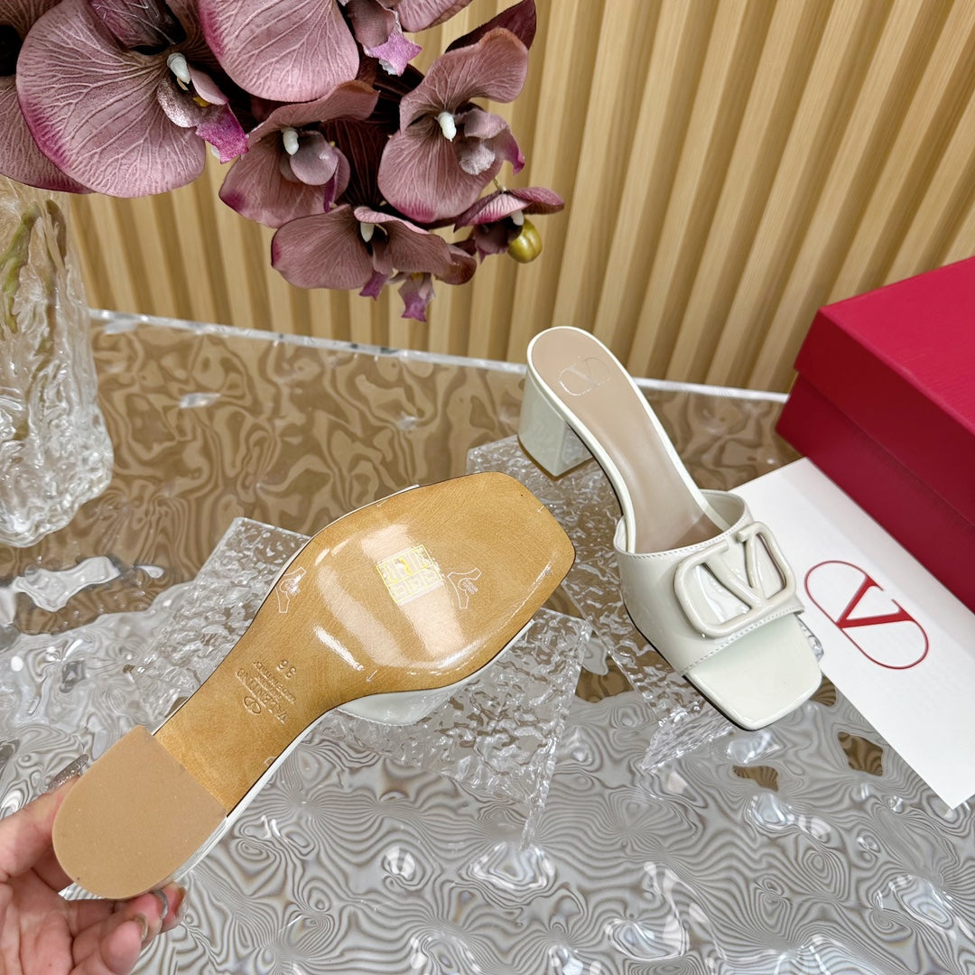 VLOGO SIGNATURE HIGH SHINE OPEN TOE SANDALS 60 MM IN WHITE CALFSKIN