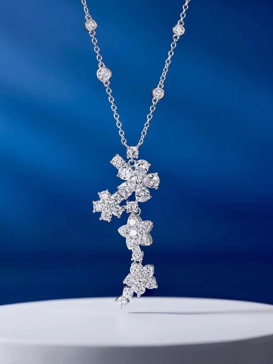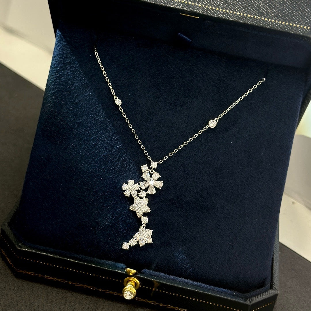 LOTUS THREE FLOWERS SILVER DIAMOND NECKLACE