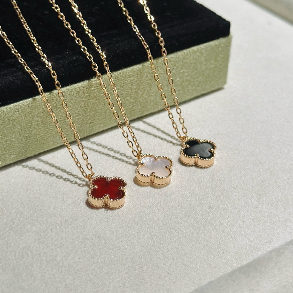 PURE CLOVER PINK GOLD ONYX NECKLACE