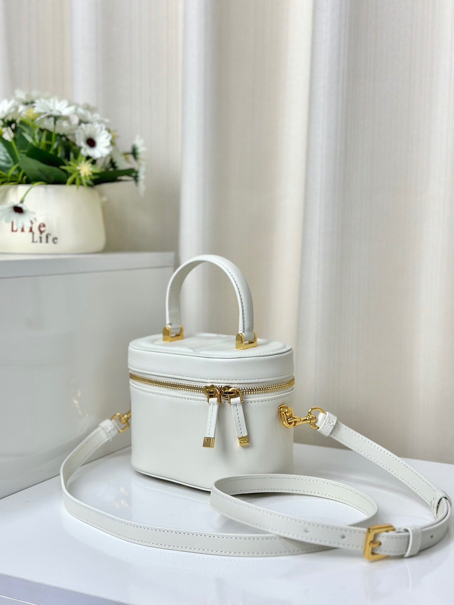 CC Vanity Case 17cm White Lambskin Gold hardware