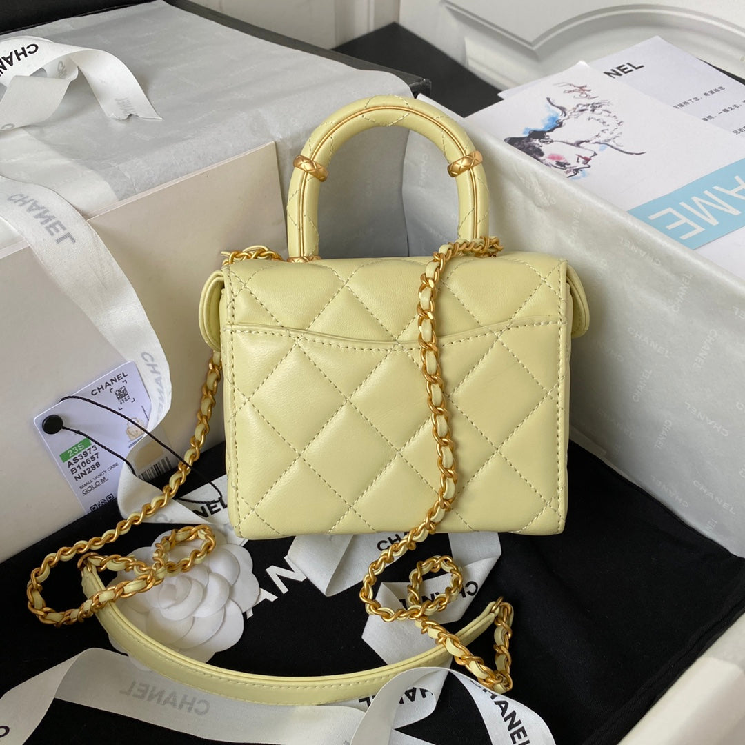 CC SMALL 15 VANITY CASE IN LIGHT YELLOW CALFSKIN GOLD HARDWARE