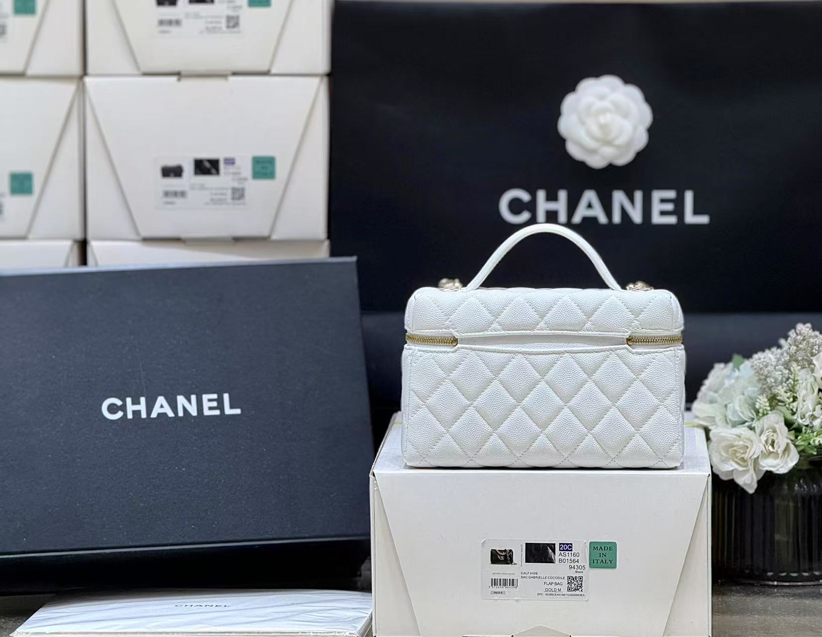 SMALL VANITY CASE 17 IN WHITE CALFSKIN GOLD HARDWARE