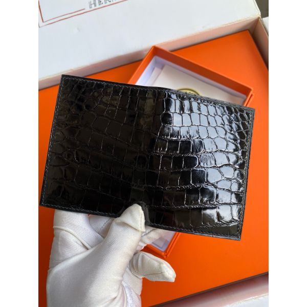 HERM MC² Euclide Card Holder in Black Shiny Alligator Leather