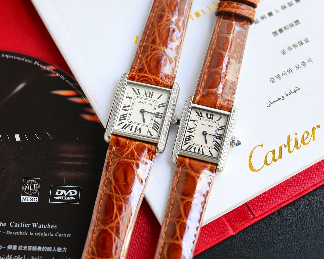 • TANK MUST SMALL STEEL DIAMOND BEZEL LEATHER STRAP EWHITE DIAL