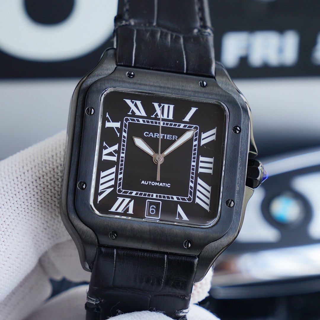 SANTOS 40MM BLACK CASE LEATHER STRAP