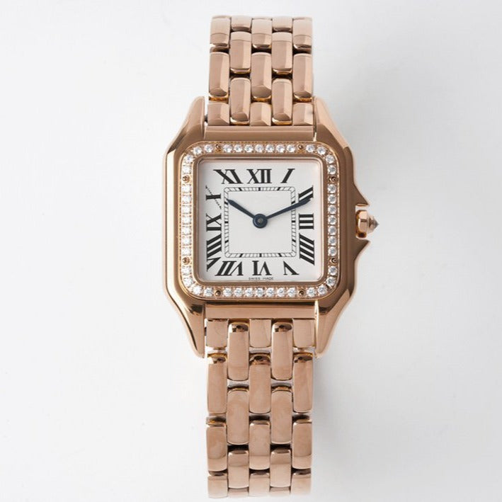 PANTHERE 27MM PINK GOLD CASE DIAMOND BEZEL WHITE DIAL