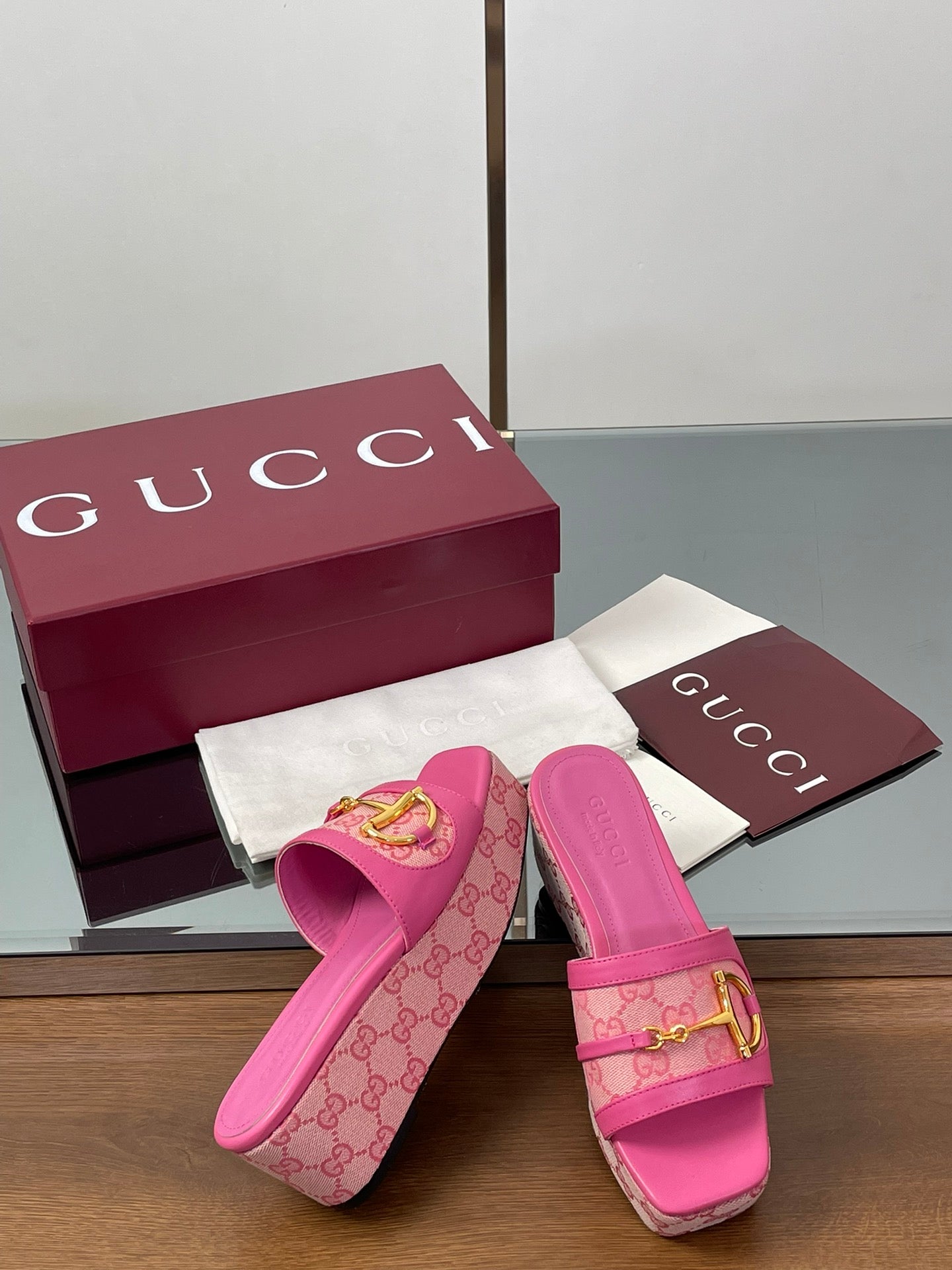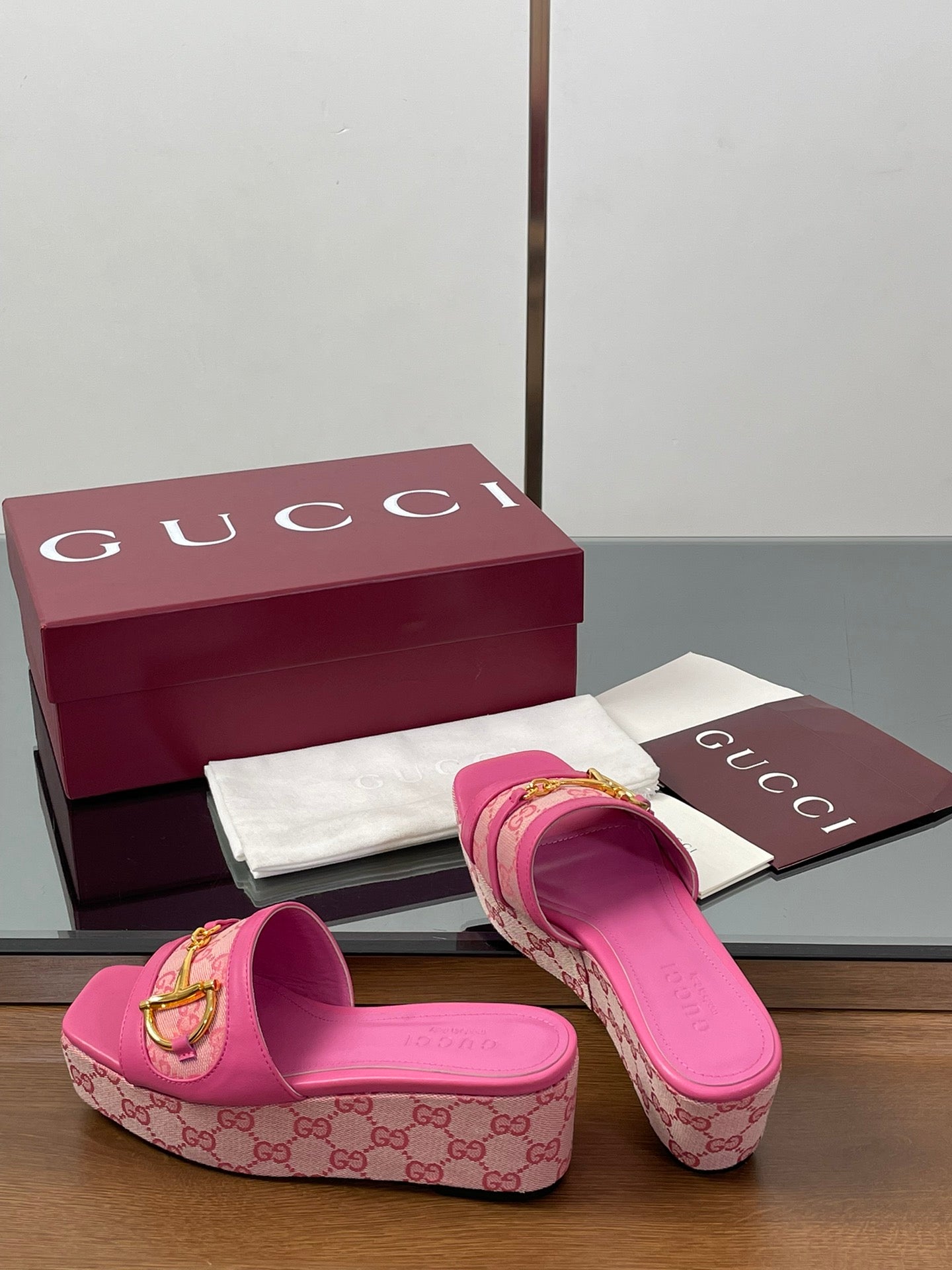 • HIGH 6.3 CM WEDGE SANDALS IN PINK CALFSKIN AND FABRIC