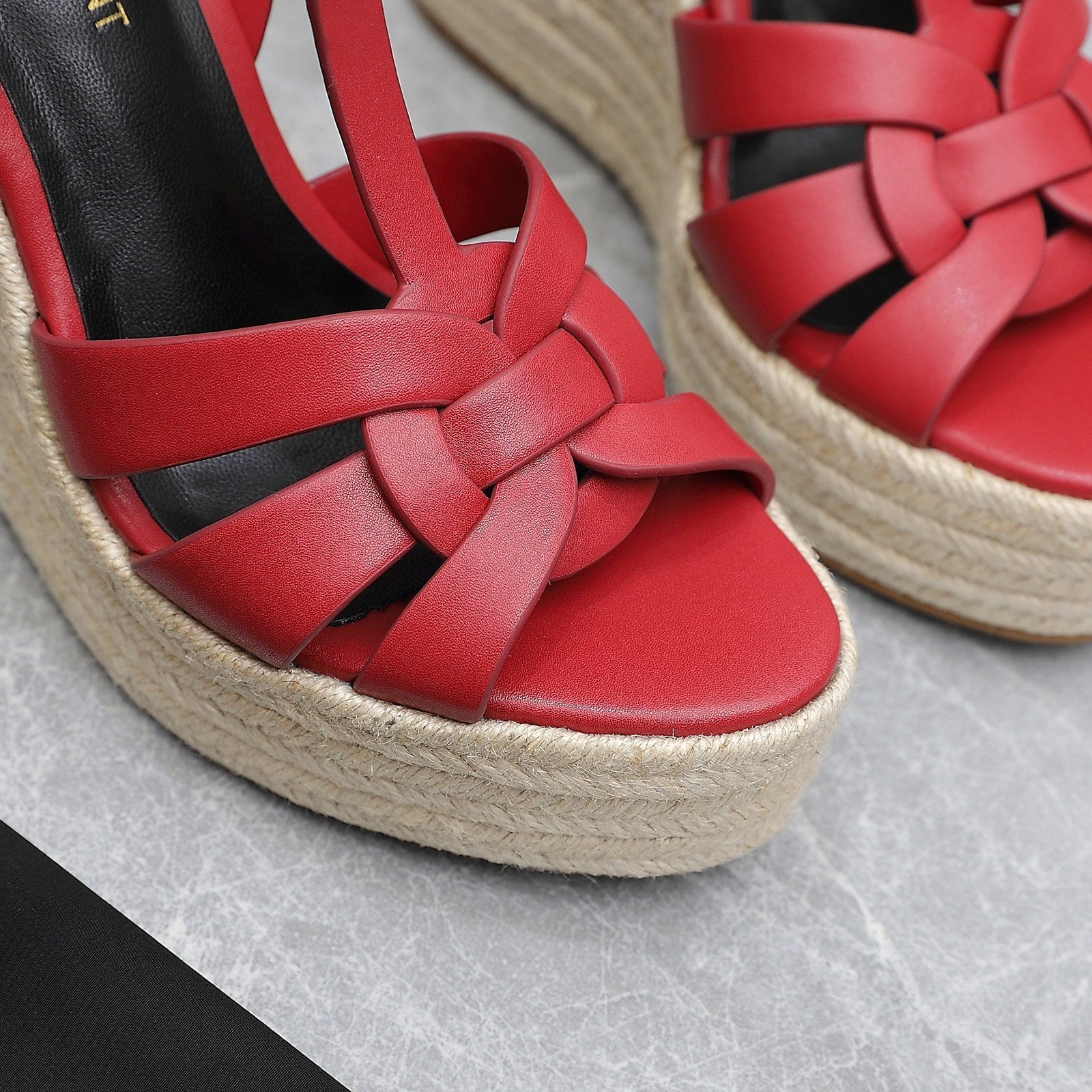 SL TRIBUTE WEDGE SANDALS RED CALFSKIN